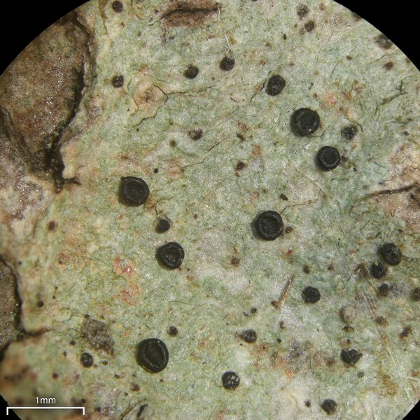 Location: Arkansas, Ozarks Date: 2010-11-07 Photo by: Jason Hollinger Notes: on bark; K+y-red, spores 12-15µm [Hollinger 1753]