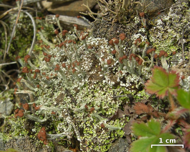 Index → Clads → Cladonia → C. cariosa Location: British Columbia, Boundary Ranges Date: 2013-07-00 Photo by: Curtis Björk Notes: Mossy outcrop, montane