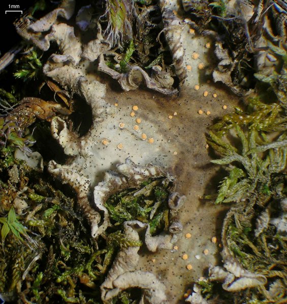 Location: Montana, Absaroka Wilderness Date: 2010-11-04 Photo by: Jason Hollinger Notes: on Peltigera rufescens on mossy ground [det. by P. Diederich; Hollinger 1632]