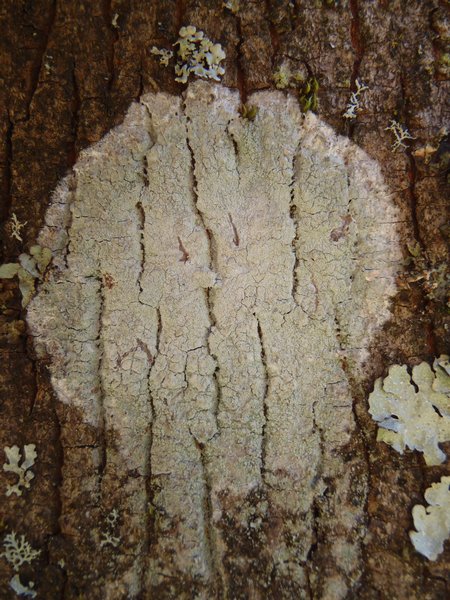 Index → Buttons → Phlyctis → P. argena Location: British Columbia, Vancouver Island, Albert Head Date: 2013-10-03 Photo by: Curtis Björk Notes: Corticolous on large Acer macrophyllum by marine shore