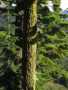 Some good places to look at lichens include Spahats Creek, Whitehorse Bluffs, the Ray Farm, Clearwater Lake Campground, and the upper forests and summits of Trophy and Battle Mountains. Particularly impressive populations of Lung Lichen (Lobaria pulmonaria) and Reindeer Lichens (Cladina spp.) occur along the Ray Mineral Springs trail and on the Dragon’s Tongue respectively.